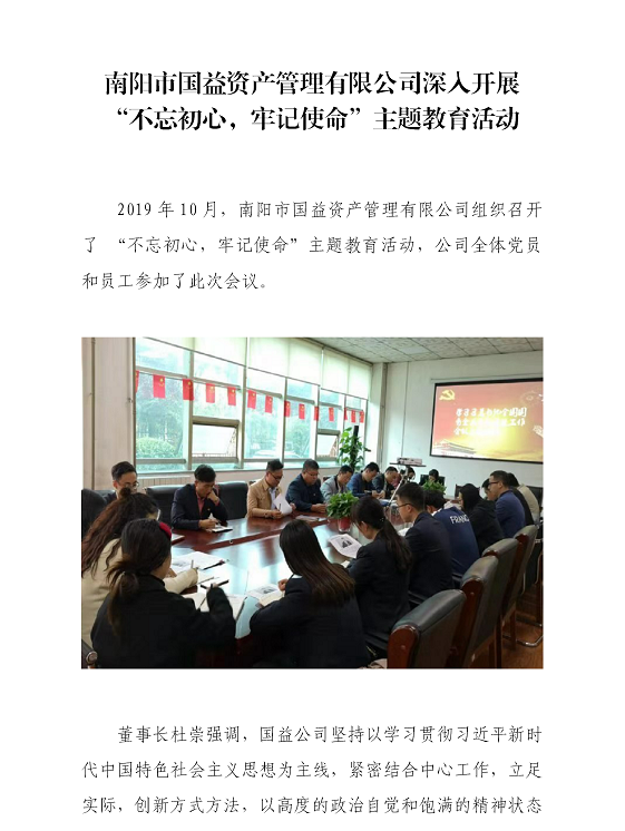 南陽市國益資產(chǎn)管理有限公司深入開展 “不忘初心,牢記使命”主題教育活動